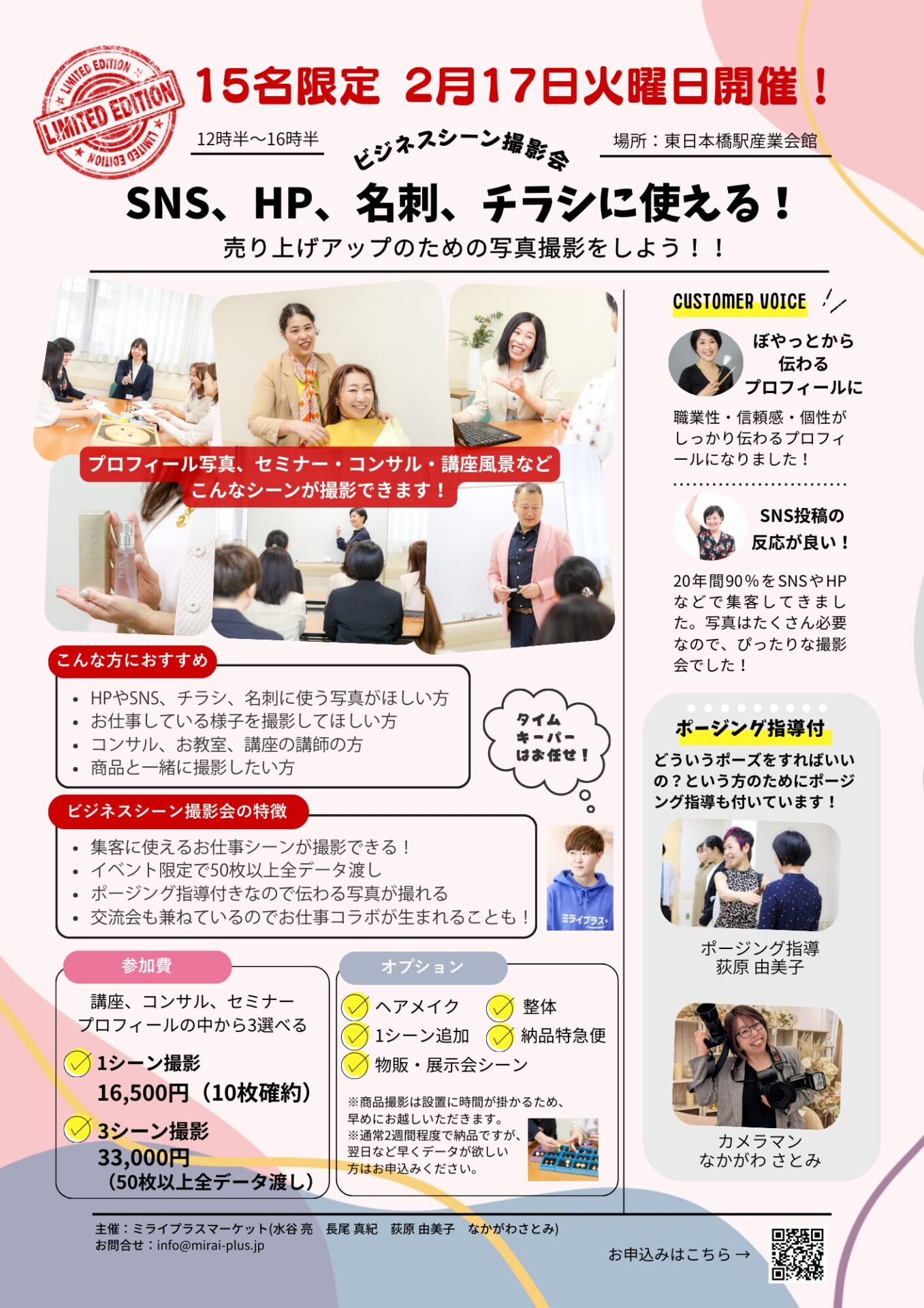 集客と信頼をつくる写真を一日で揃えるための撮影会です。