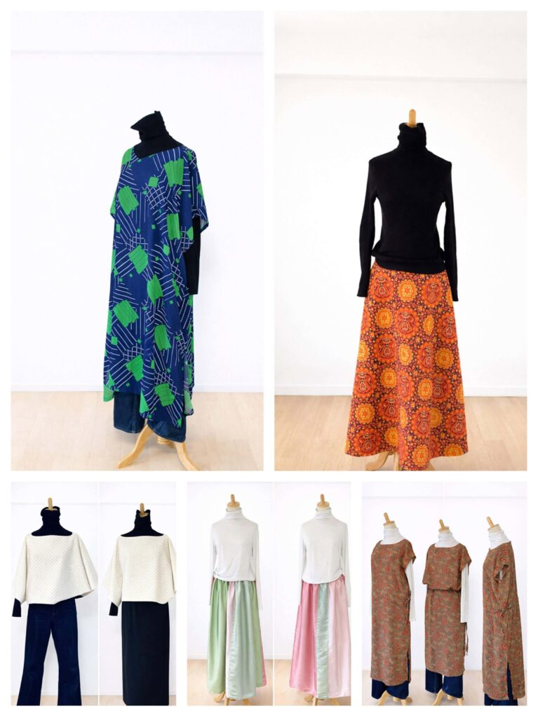 今回は ヴィンテージ生地を使った、Glowオリジナルの世界で一点スカート、ブラウス、ジャンバースカート、カフタン風ワンピースシルクストールを出品いたします。